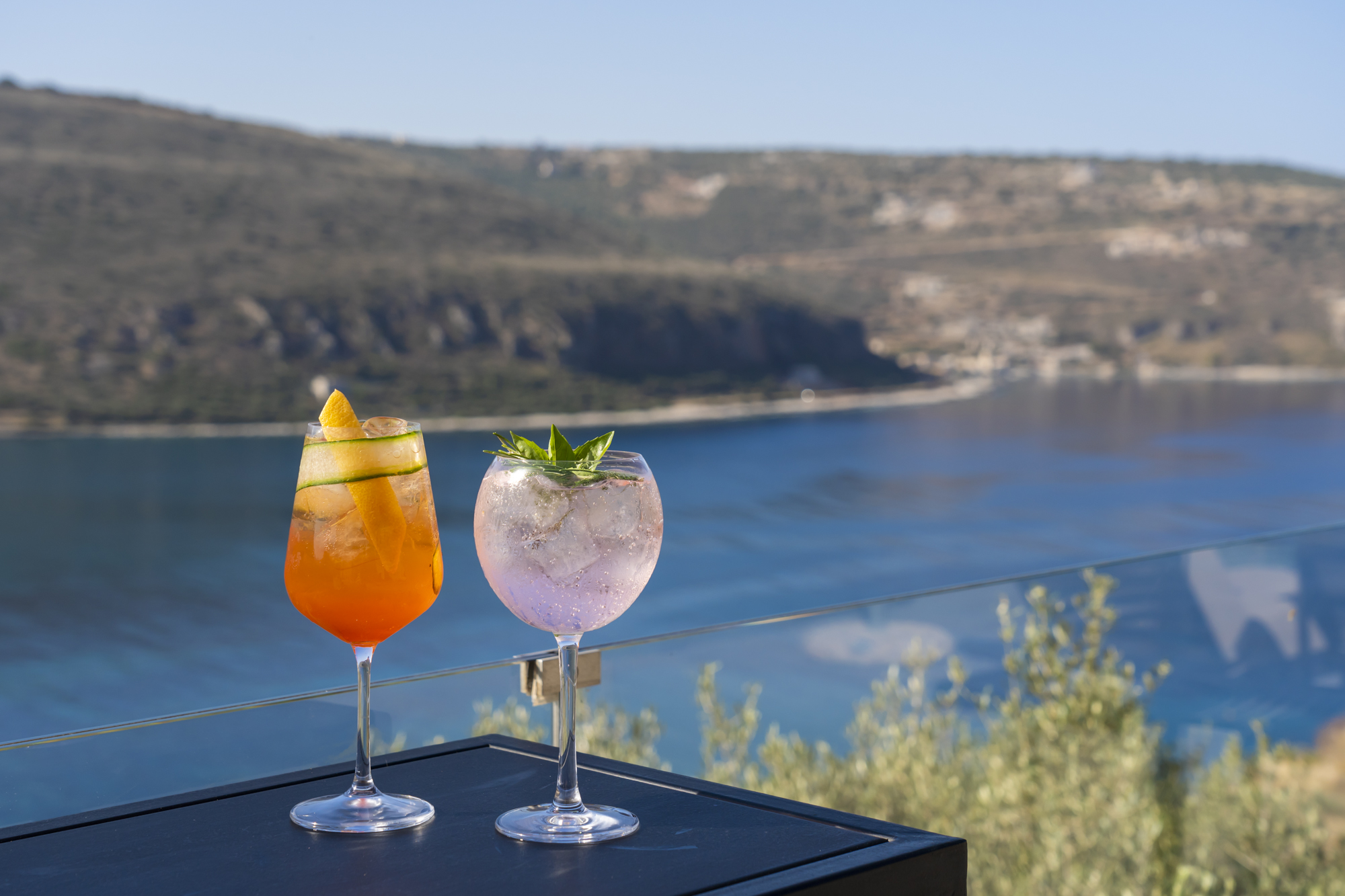 As the sun sets over the Bay of Oitylo, enjoy a handcrafted cocktail and surrender to an experience of taste and tranquility.